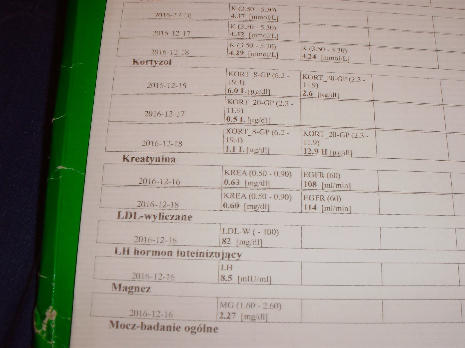 W Poniedziałek 02.01.2017 r. byłam w Szpitalu MSW zapisać się na zaległą wizytę ze skierowaniem poszpitalnym do neurologa, a w rzeczywistości podczas zapisu okazało się że mam skierowanie do poradni neurologicznej, ale specjalizacja Parkinson... co mógł pomyśleć lekarz, który na konsultacji w szpitalu nawet mnie nie zbadał, tylko po chwili rozmowy kazał się o siebie zgłosić i dał leki których i tak nie mogę zażywać, bo na serce mi szkodzą...Nie wiem co o tym wszystkim mam sądzić. Postanowiłam udać się do lekarza pierwszego kontaktu tym bardziej, że pani doktor i tak kazała mi się zgłosić na początku roku celem wyrobienia nowej karty DILO. Ponieważ jak już wcześniej pisałam w badaniach rezonansu magnetycznego stawów kolanowych wychodzą zaburzenia szpiku kostnego mogące wskazywać na jakieś choroby szpiku, co niepokoi lekarzy już od ponad roku, i miałam mieć robioną trepanobiopsję, ale poprzednio w Instytucie Onkologii w Warszawie Onkolog nie potrafił mnie znieczulić i znaleźć odpowiedniej igły... wiem, że brzmi to zabawnie, ale uznał, ze nie może mi tego zrobić, bo nie jest w stanie. Odesłał mnie do hematologa, ten nie stwierdził nic konkretnego i z diagnozą jakaś choroba krwi bliżej nie określona odesłał do reumatologa... I tak mnie odsyłają, jedni do drugich... I nic nie wiemy nadal. Więc 04.01.2017.r. Udałam się do lekarza Pierwszego Kontaktu, Jest to naprawdę bardzo dobry specjalista,