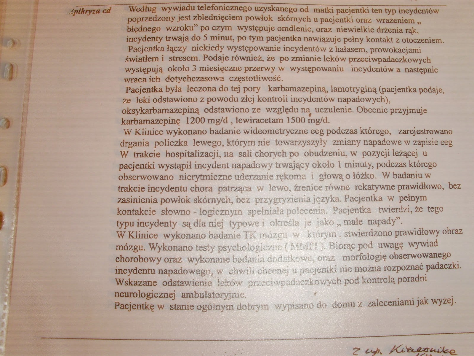 W tym poście postanowiłam dodać kolejną dokumentację medyczną będzie to stara dokumentacja z neurologii, psychiatrii i wszystkim co z tym powiązane